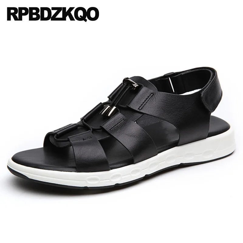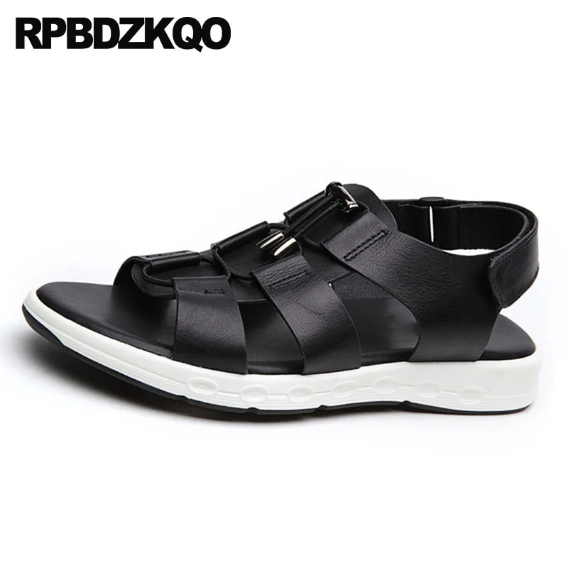 shoes black famous brand roman sport luxury italian native open toe genuine leather men gladiator s